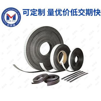 橡膠磁條是通過鐵氧體磁粉和合成橡膠復合且加工而成。起磁能積在0.60~150MGOe,使用溫度可達100C??赏ㄟ^適當的加工工藝將其加工成卷狀、片狀、條狀、塊狀、圓環及各種雜亂形狀,因為它具有柔韌性、彈性、可繞曲性等優勢。另外它的外表還能夠覆PVC片、銅版紙、雙面膠,涂UV油,因為磁體具有有機物包裹,使其具有良好的腐蝕性。